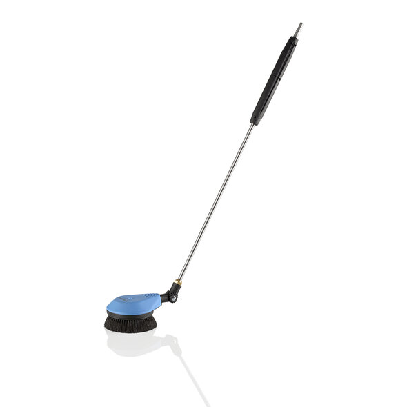 Ord. no. 410507The rotating washing brush removes even stubborn dirt from sensitive surfaces thanks to its rotating brush rim. The working angle of the washing brush can be optimally adjusted via a joint. The washing brush is available in different lengths. Brush head ø 180 mm, connection: barbed fitting D12 / M22 screw connection