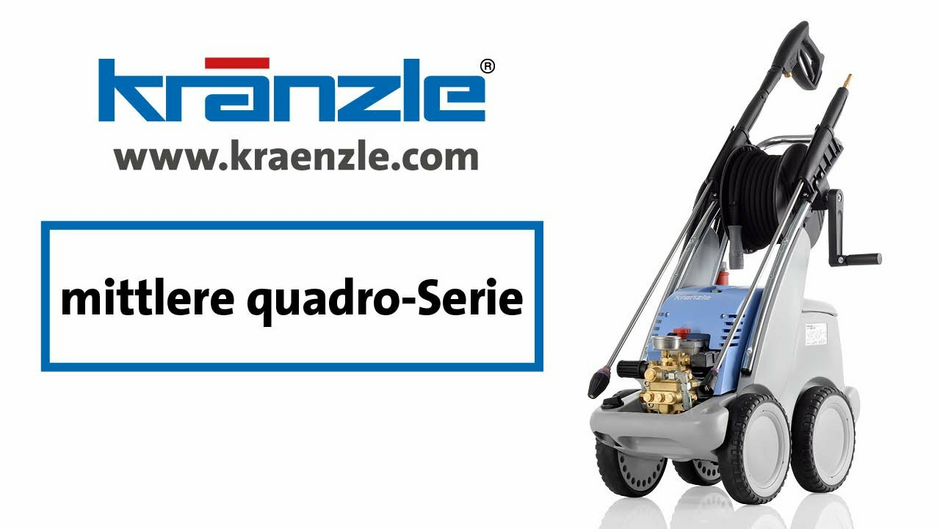 High-pressure cleaners of the medium quadro series combine all the advantages of the Kränzle Profi series with a robust double-axle chassis with 4 wheels. The chassis ensures a secure footing and a high level of comfort when frequently changing locations. Large gearboxes and oil housings significantly extend the service life in tough continuous operation. And of course, the integrated hose reel with folding crank handle and up to 20 m of high-pressure hose are standard on many quadro models - as are the robust impact protection and integrated water tank.
