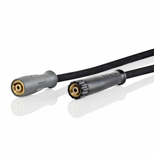 Kränzle high-pressure hoses with steel mesh are durable, flexible and long-lasting. The Twist-Stop twist protection prevents the high-pressure hose from twisting during work. For use in hygienic and sanitary areas, we recommend high pressure hoses in non-marking design, which are even more abrasion-resistant and leave no marks or streaks.
